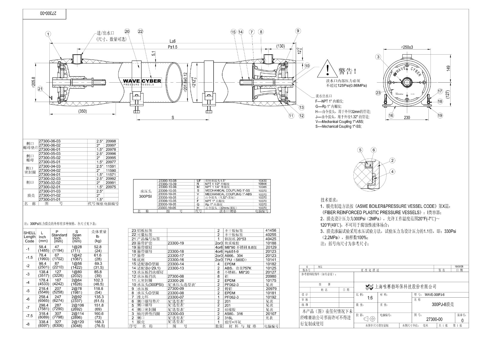 唯赛勃RO膜壳膜元件压力容器图纸安装图